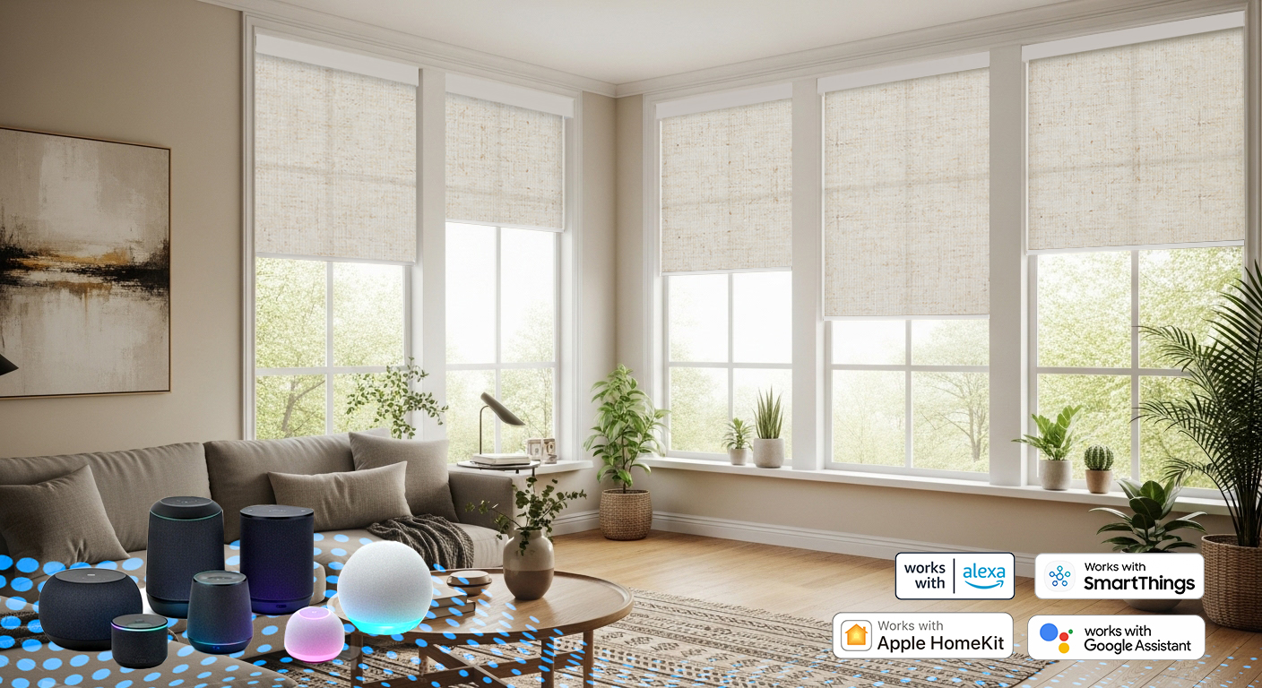 Aprilsmart Motorized Light Filtering Roller Shades 70% Blackout Linen