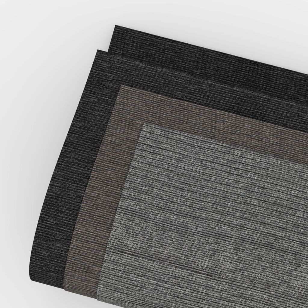 The fabric is made of white high-strength polyester and dark yarn, which is interlaced and encrypted to create a clear, contrasting square pattern. The surface is processed by the sand finishing process to form a uniform distribution of fine particles, which not only improves the friction of the fabric, but also gives it a three-dimensional touch and rich texture similar to wool. The interlacing design of classic black and white color collision achieves 100% full shading effect, which can accurately meet the needs of modern minimalist, industrial style space for efficient control of light, and is both functional and decorative.