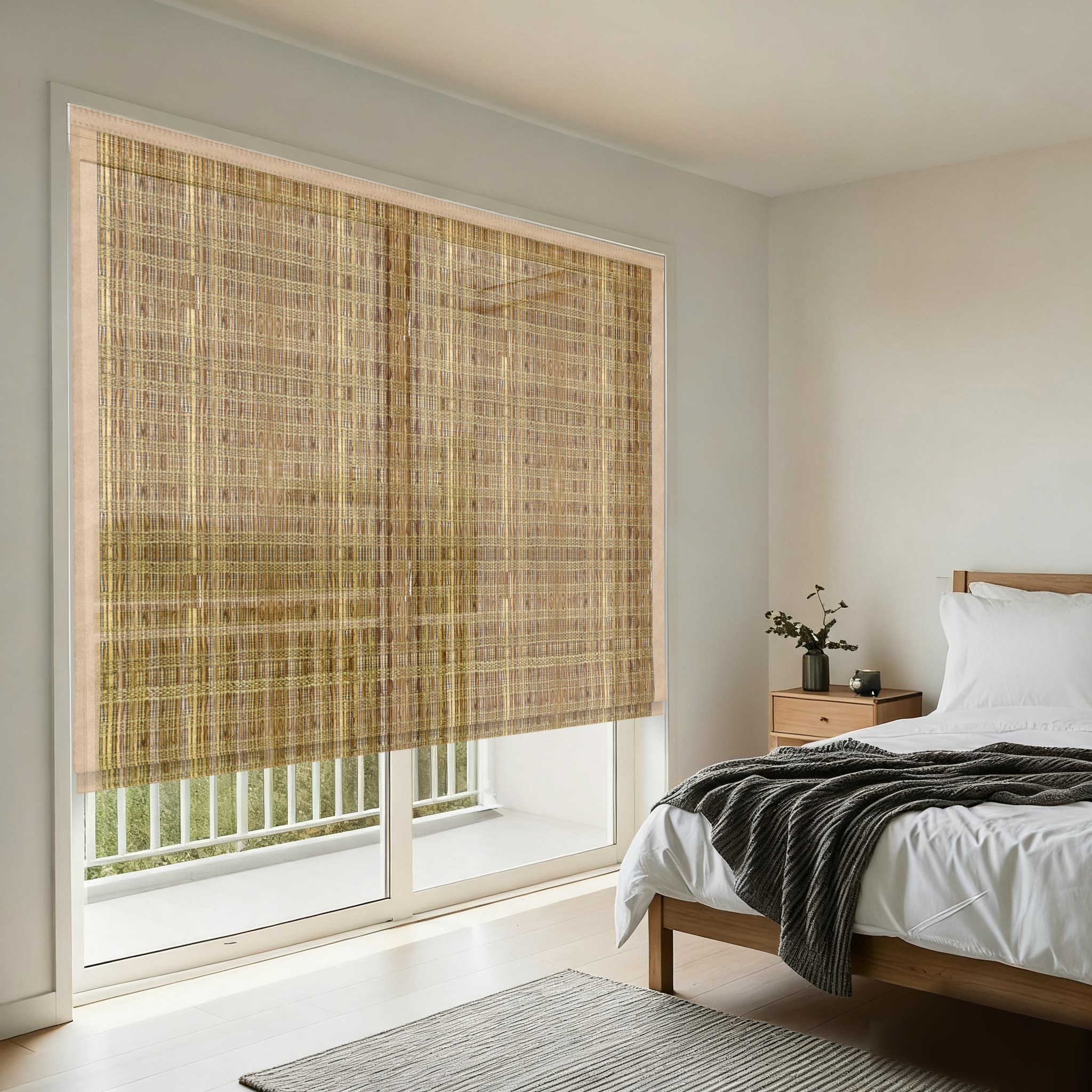 Aprilsmart Motorized Woven Wood Shades 50% Blackout